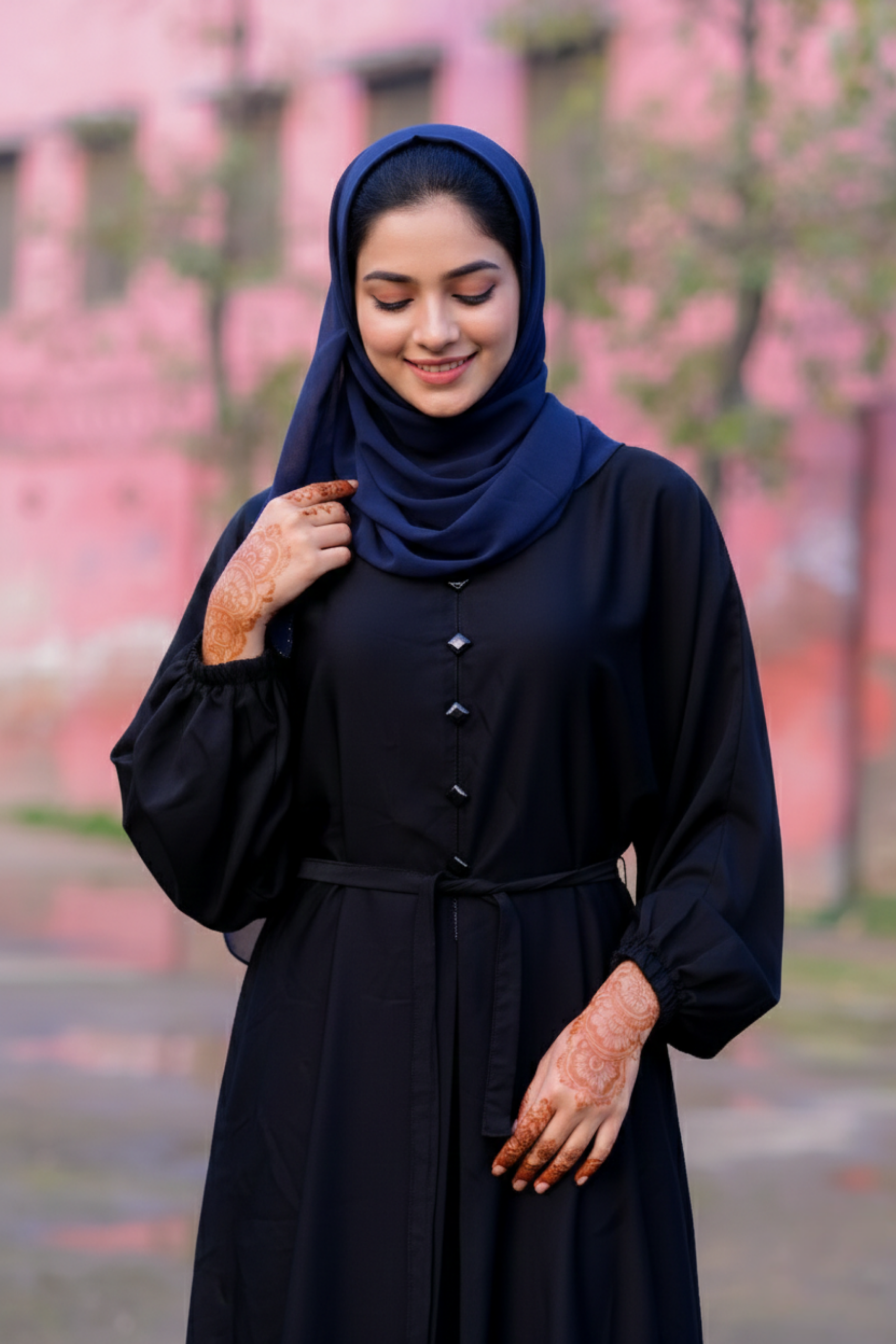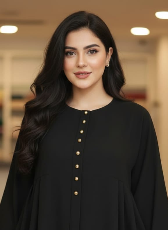 Aria Midnight Button-Down Abaya with Cinched Waist